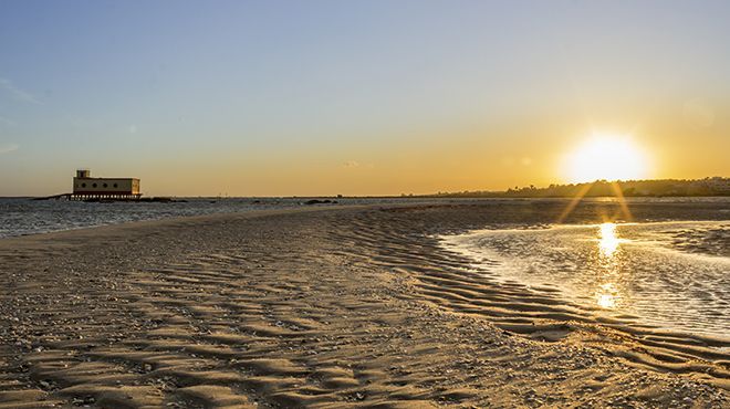Tavira coastline is calm and peaceful, with extremely inviting eleven kilometres of fine white sand beaches and very warm water. The beaches are crossed by Ria Formosa Natural Reserve, offering pleasant boat trips and the chance to observe the typical wetland flora and fauna, most particularly the water birds. It is estimated that counting both the resident and migratory species that can be seen here, Ria Formosa hosts more than 30 thousand birds each year.